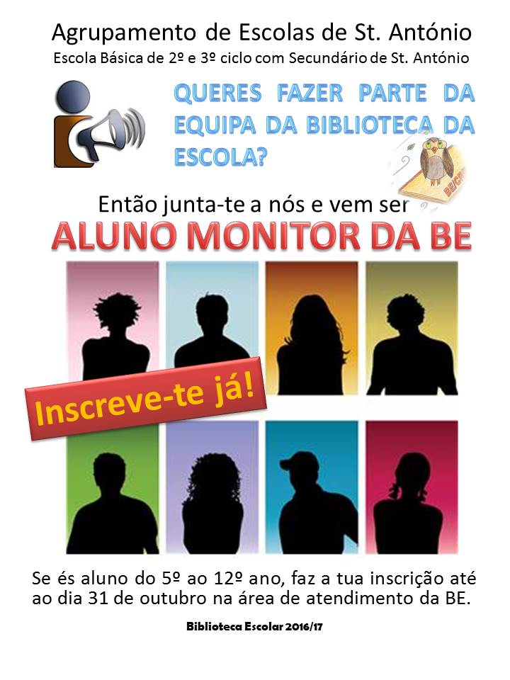 Outubro é o Mês Internacional das Bibliotecas Escolares. A nossa BE já está em pleno funcionamento. Participa nas diversas atividades e desafios que ela te oferece! Monitor BE