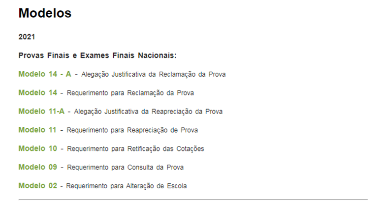 Modelos referentes ao processo de reapreciação devem, preferencialmente, ser preenchidos em formato digital, disponíveis em: https://www.dge.mec.pt/modelos.